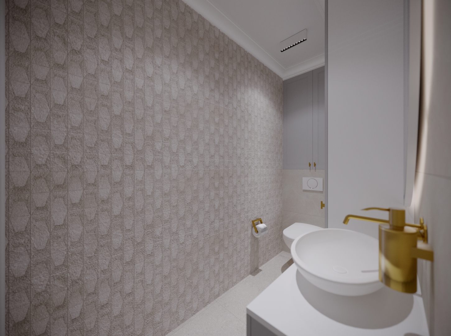 Projektując wnętrze kancelarii, zależało nam na stworzeniu atmosfery, która łączy nowoczesną elegancję z wyważoną, powściągliwą estetyką. Sięgnęliśmy po stonowaną paletę barw, naturalne materiały oraz detale budujące wrażenie trwałości i stabilności — cechy nieodłącznie kojarzone z działalnością prawniczą. W strefie spotkań zaproponowaliśmy rozwiązania, które sprzyjają poczuciu prywatności, a jednocześnie pozwalają prowadzić rozmowy w komfortowych warunkach. Uwagę poświęciliśmy również oświetleniu, traktując je jako jeden z kluczowych elementów, który wpływa na odbiór całego wnętrza i podkreśla jego proporcje. Dzięki starannemu dobraniu opraw i poziomów natężenia światła poszczególne przestrzenie kancelarii tworzą spójną, elegancką całość, w której każdy detal ma swoje uzasadnione miejsce. Naszym celem było stworzenie środowiska, które wzmacnia profesjonalny wizerunek kancelarii, nie tracąc jednocześnie poczucia wygody i naturalności.